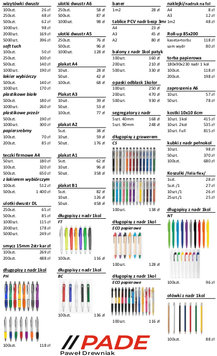 CennikPoniżej znajduje się nasz cennik, w przypadku jeśli nie znalazłeś swojego produktu skontaktuj się z nami. Skontaktuj się z nami